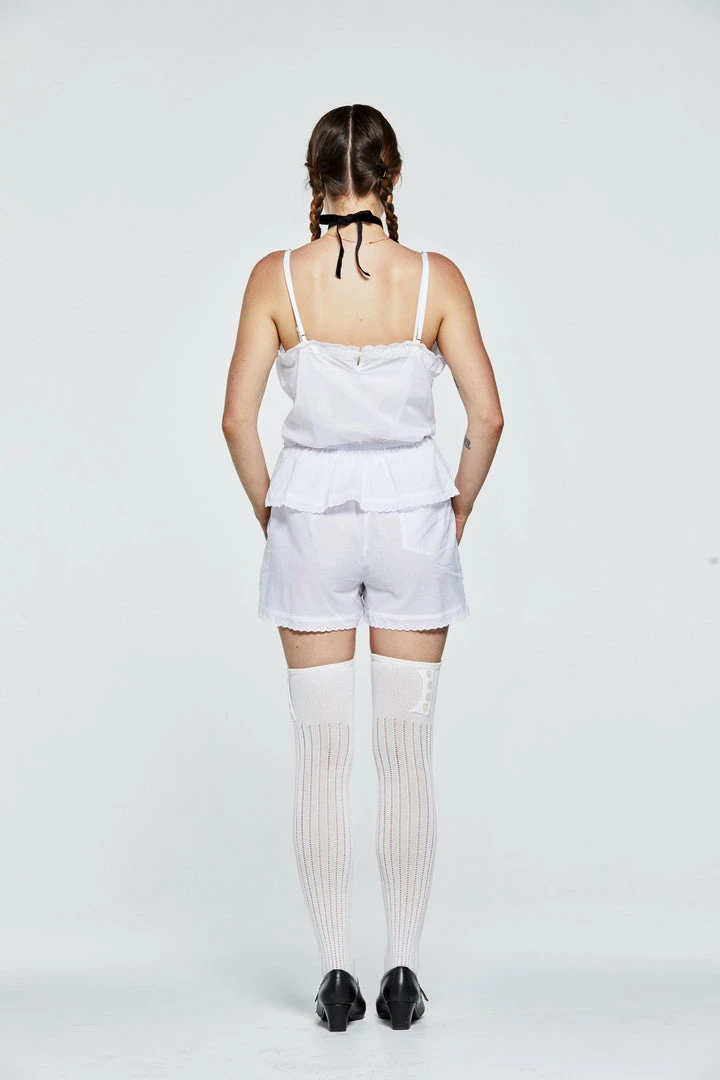 - Drawstring shorts with eyelet trim
