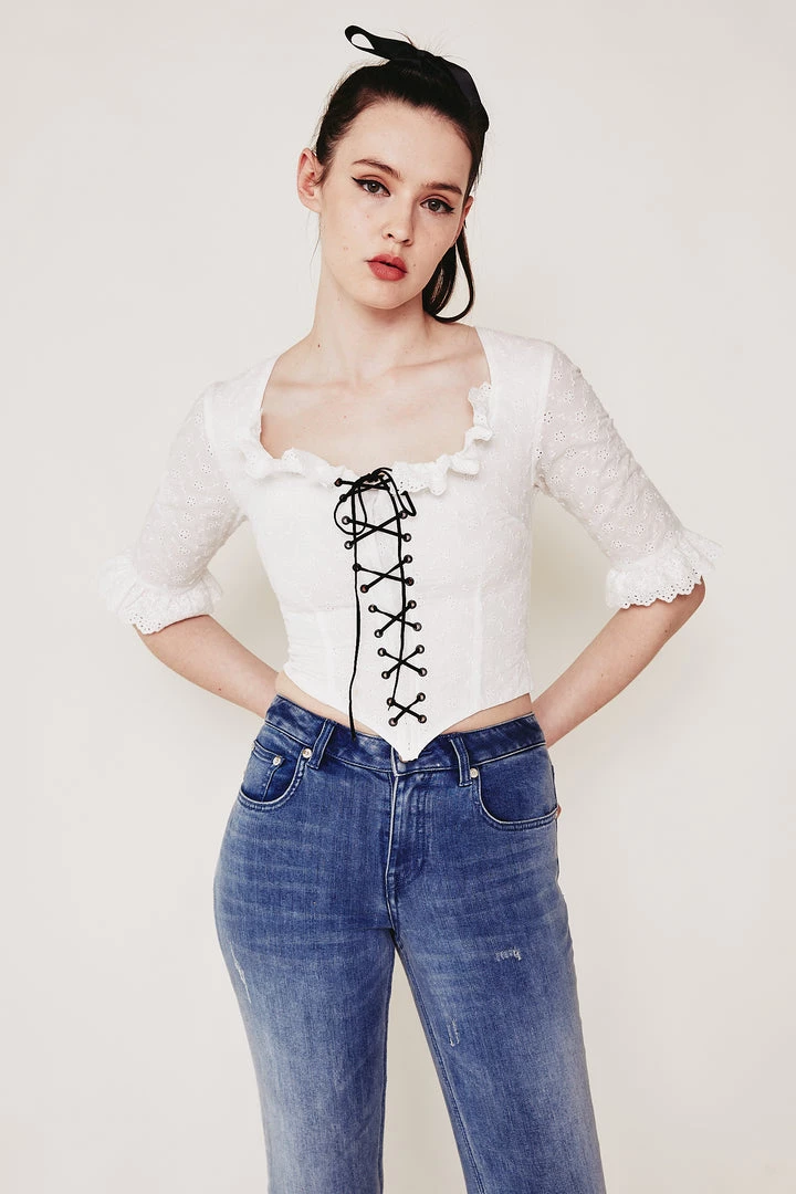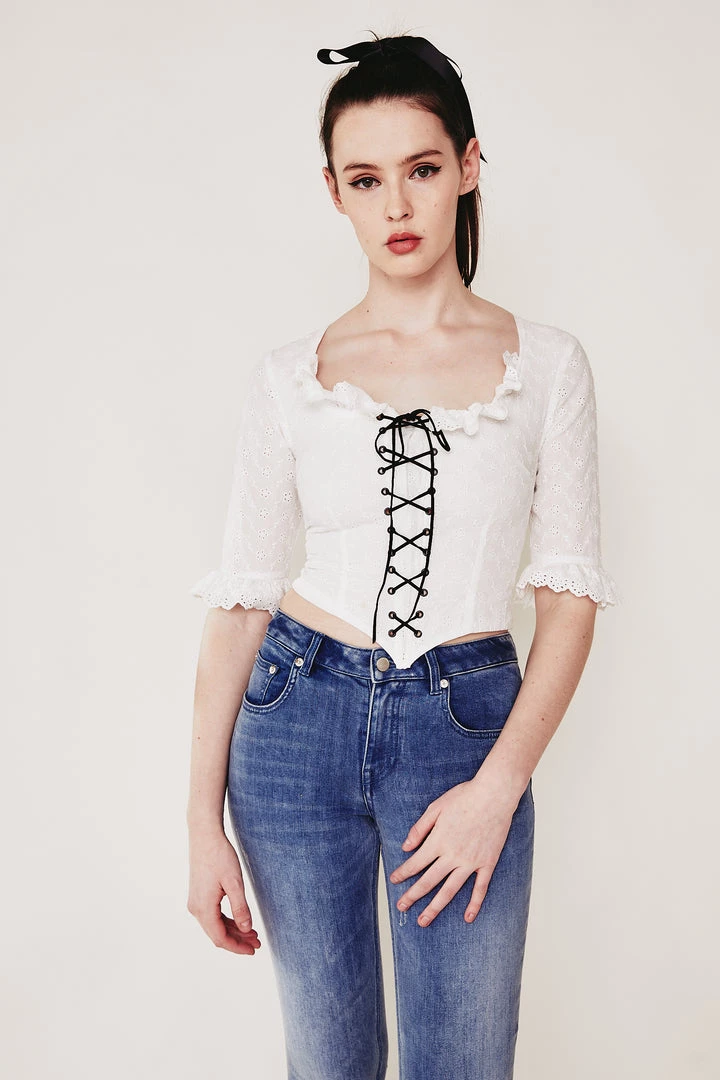 SKU: l-ecole-des-femmes-7563398938841 Categories: NEW, Tops, WOMEN Tags: Corset, Marquise, Marquise eyelet, Marquise top