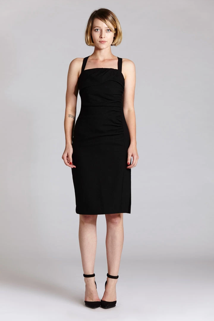 - Black wool crepe dress